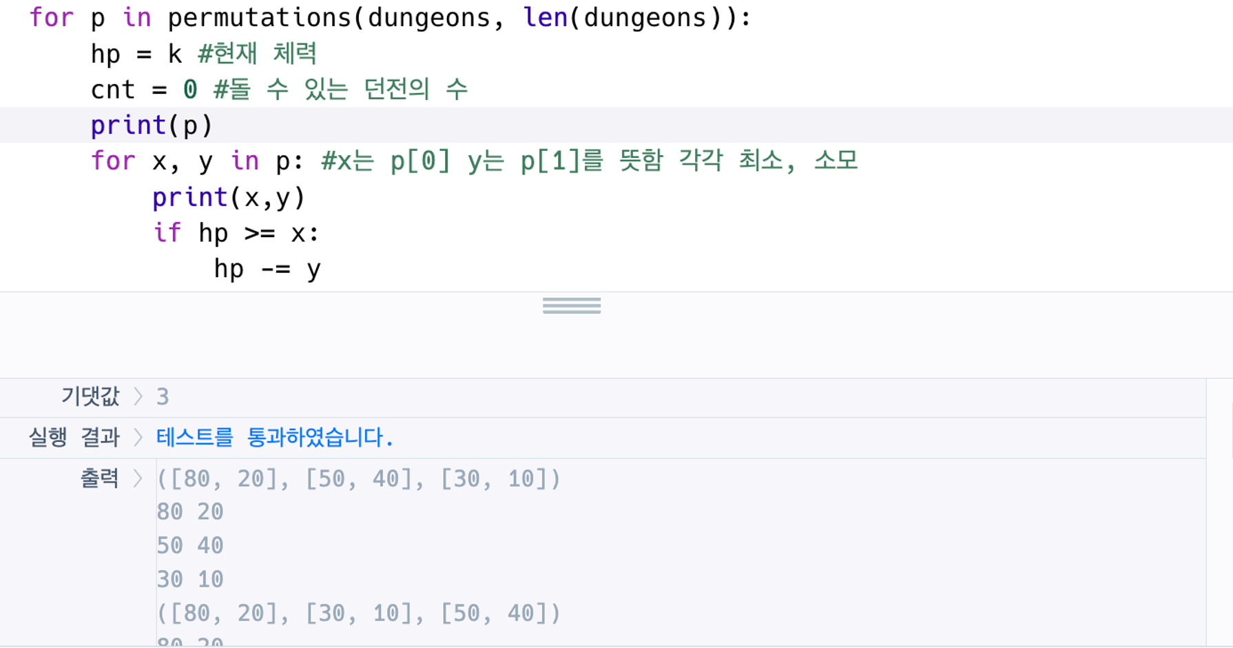 위 문제에서 던전의 길이가 최대 8이하로 주어지므로 최대 8! 의 경우의수가 있음