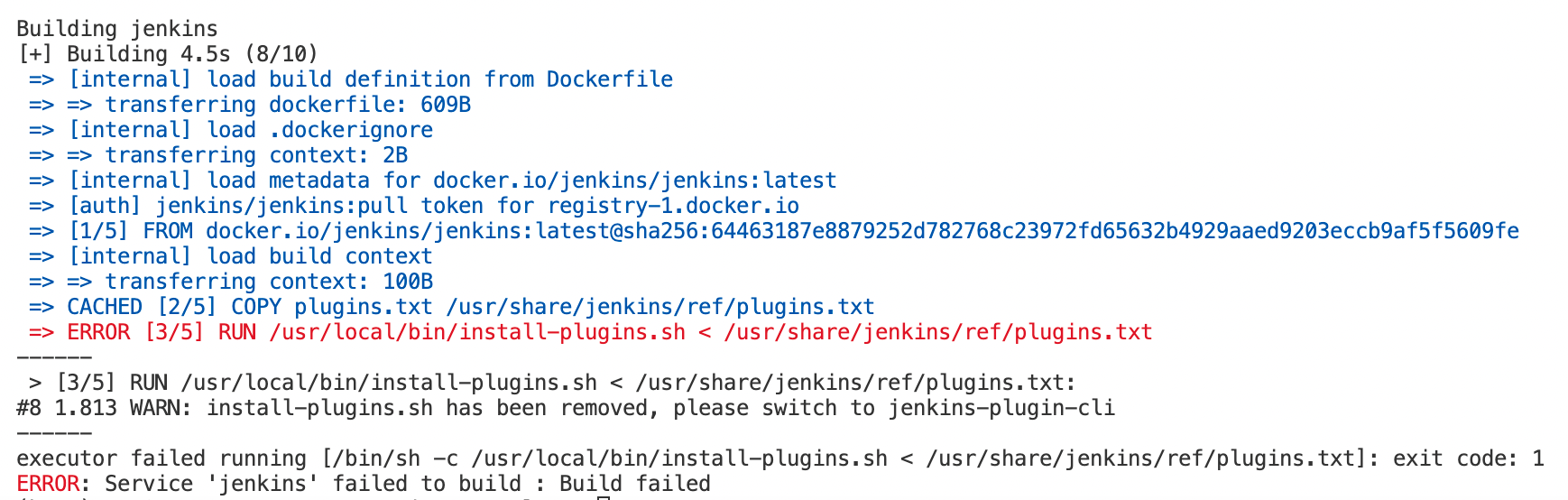 [Jenkins, Docker] WARN: install-plugins.sh has been removed, please switch to jenkins-plugin-cli 해결방법 본문