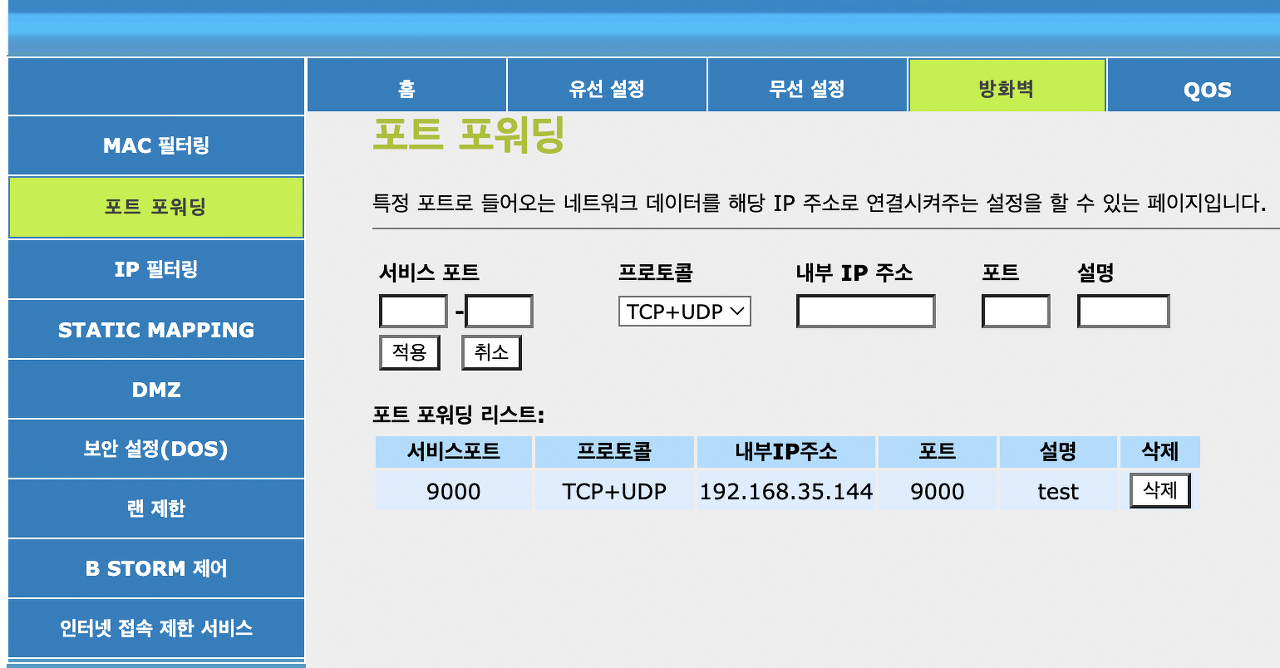 [Server] SK Broadband 공유기 포트포워딩 본문