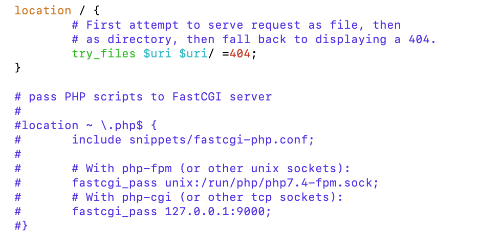 vi /etc/nginx/sites-available/default #Nginx의 기본 설정 파일로 이동