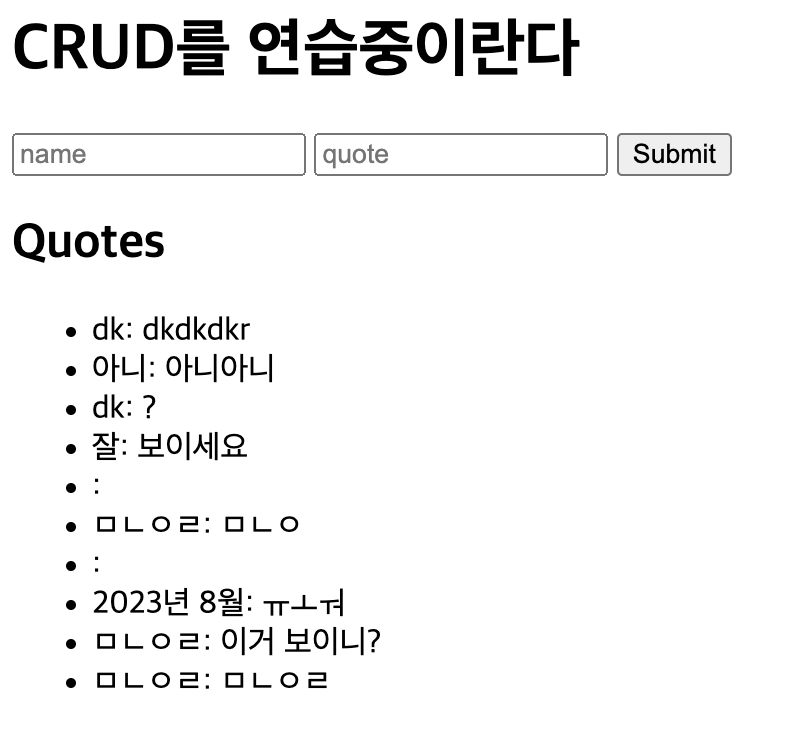 quotes 를 index.ejs에 넣자. app.get 메소드만 수정해주면 됨