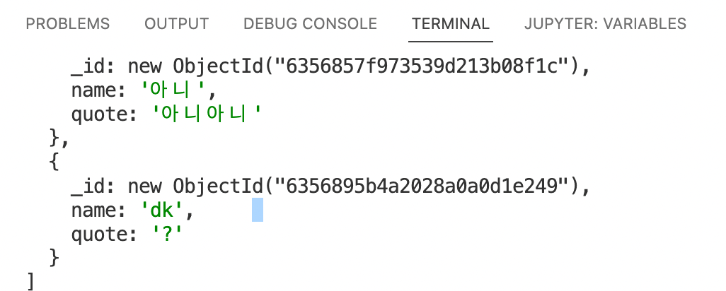 이유는, 우리가 작성한 각각의 quote 결과가 자바스크립트 오브젝트이기 떄문이다.