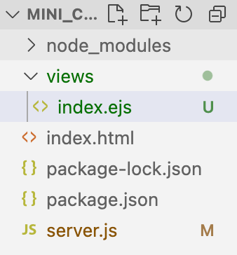 그렇다면 view를 만들어보자. index.ejs 파일을 views 폴더 안에 만들어 준다.