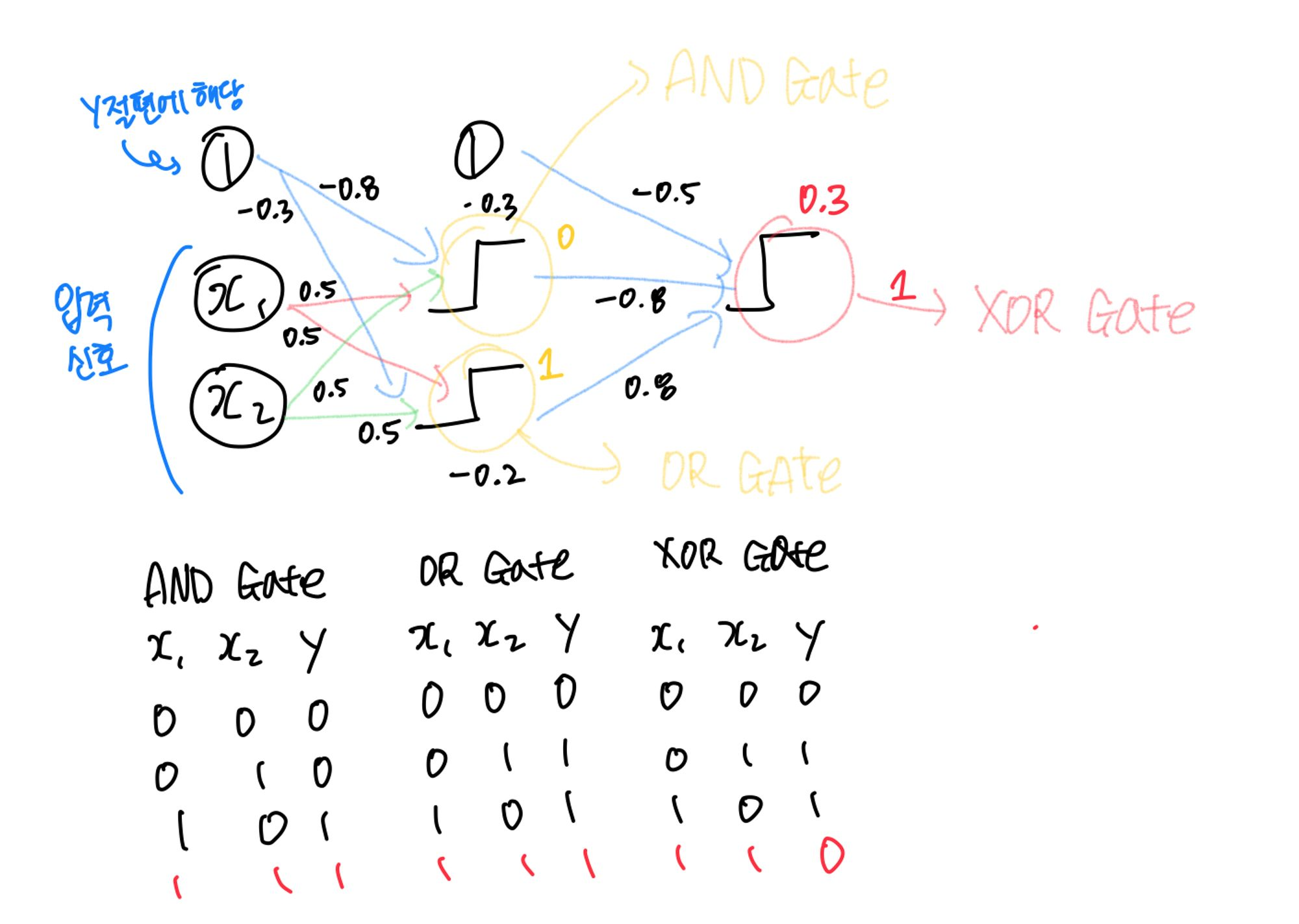 이 두 출력값을 다시 입력값으로 받아서 XOR 을 구현