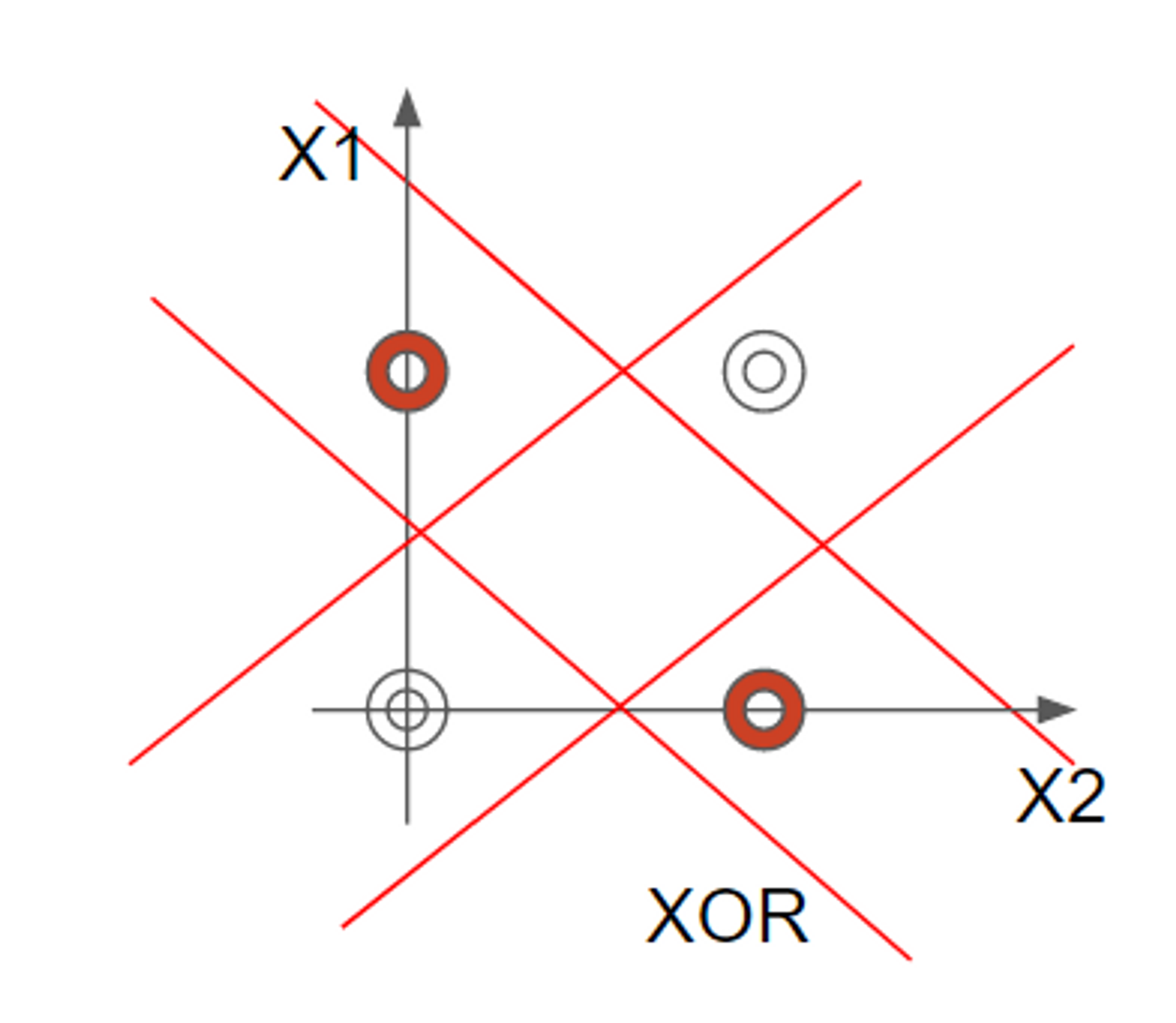 (x1, x2가 각각 0 이거나 1일 경우에는 최종 함수값이 0이어야 하고 1,0 0,1의 경우에는 1이 나와야함)