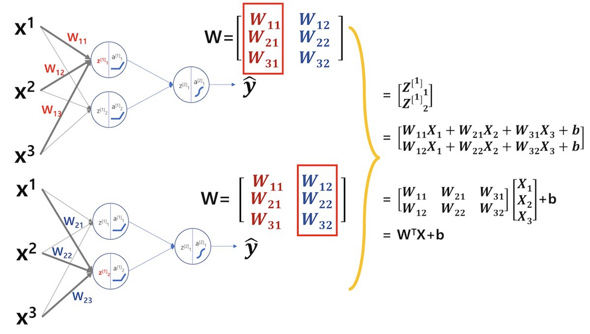 여러 노드, 여러 가중치를 모아 행렬로 나타내고, 계층별 가중치들의 모음체인 가중치 행렬을 정의