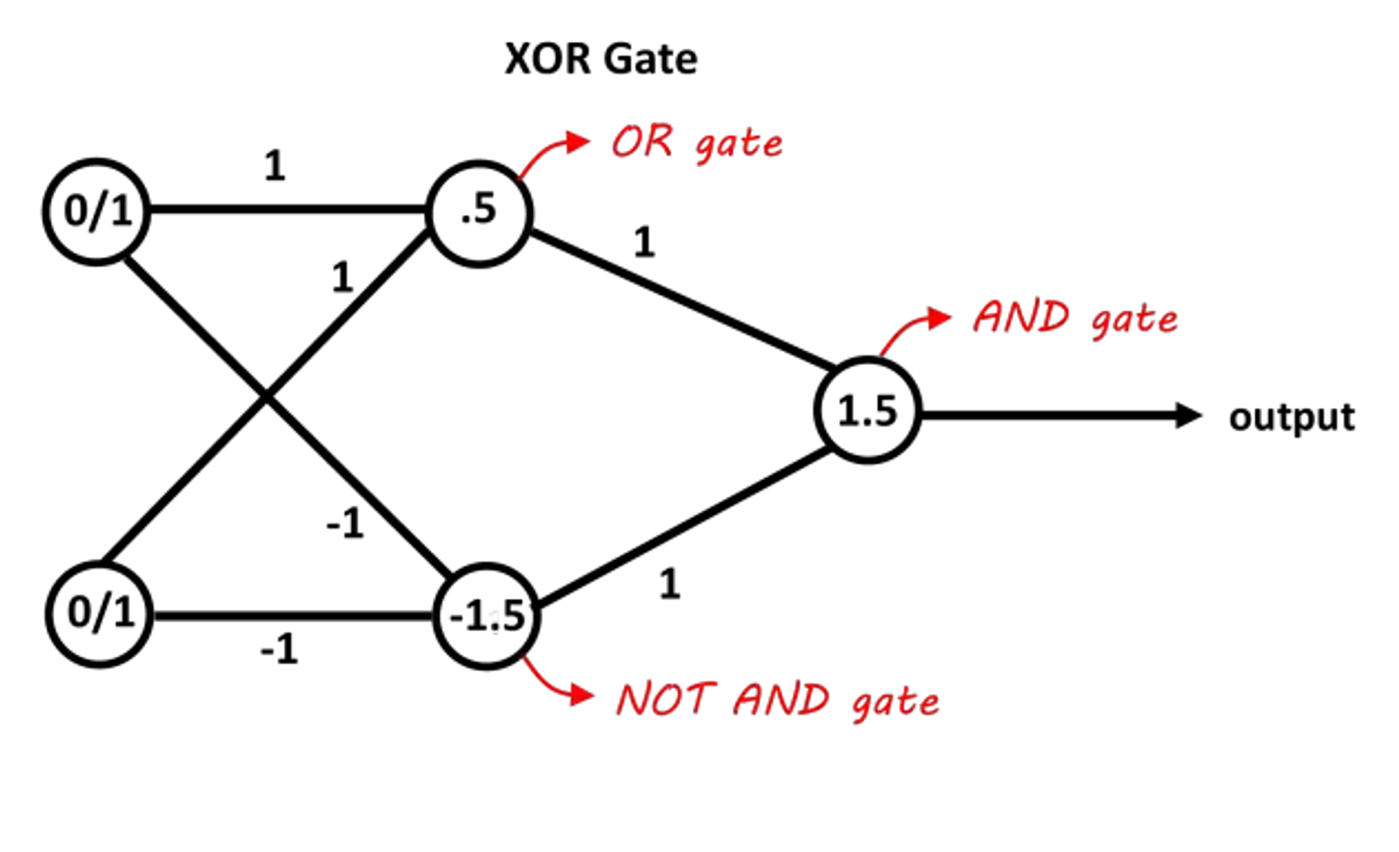 이 두 출력값을 다시 입력값으로 받아서 XOR 을 구현
