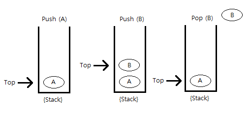 Push()를 하면, 스택안에 자료 순차적으로 쌓이고, 가장 최근에 들어온 자료는 Top이 된다.