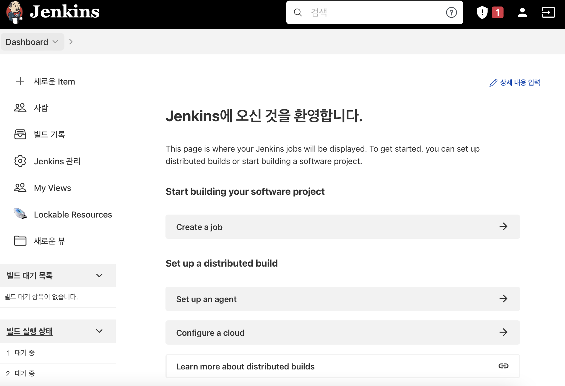젠킨스 서버를 시작한 후 UI 서버에 접속을 시도